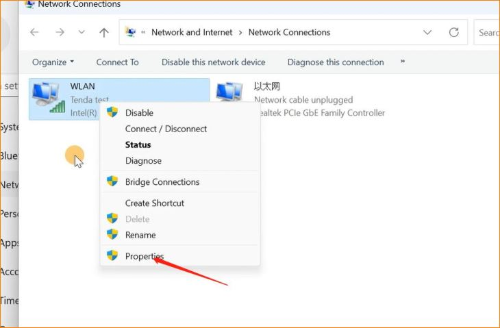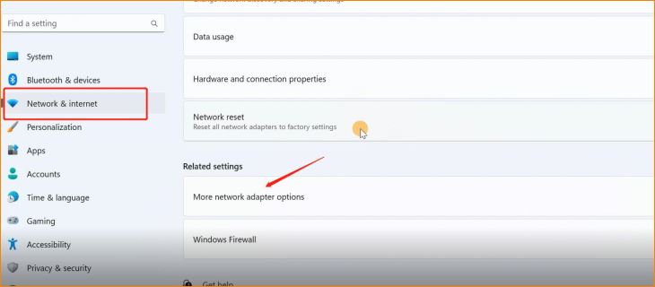Step1:We need to open WLAN in our computer.Click start>> Setting>>Network&internet>>More network adapter options
