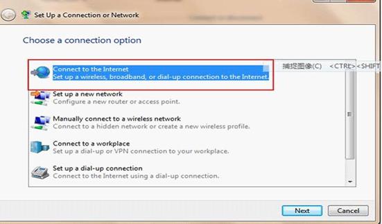 Step2: Under Choose a connection option, choose connect to the internet.
