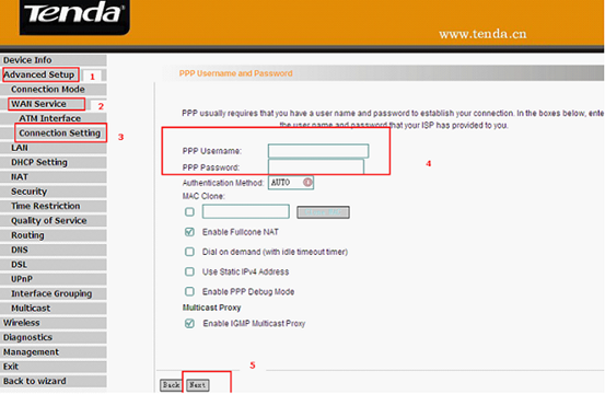 Input the PPP Username and Password given by your ISP and click next to continue in this following page.