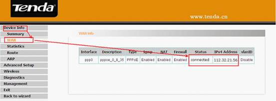 2. Refresh or reload this page three times to check the WAN Status, if it shows connected, please go to