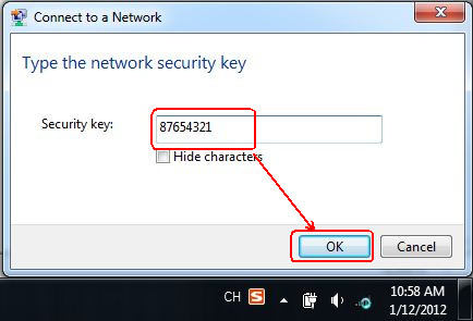 3. Type in the correct security key to connect. When it shows connected, you can use Wi-Fi now.
