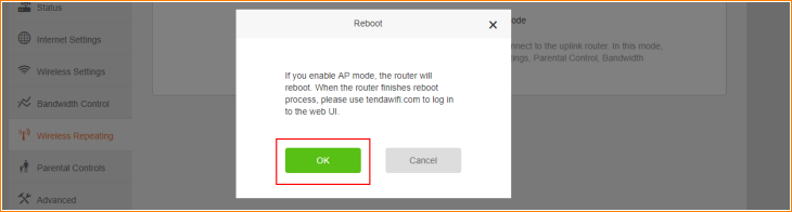 2. Tap “OK” on the pop window, then the router will reboot automatically.
