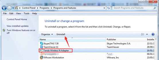 2. Find the adapter’s driver: “Tenda Wireless N Adapter”, Click “Uninstall”