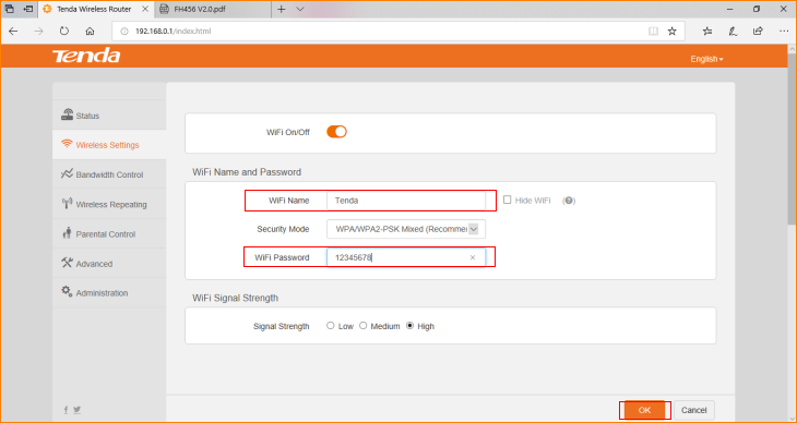 2. Change the WiFi name and Password (8~63 ASCII or 64 characters) as you want. Click “OK” to save the settings.