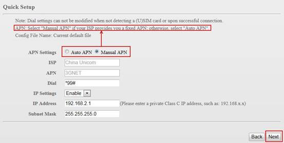 3. Choose Auto APN OR Manual APN, click Next