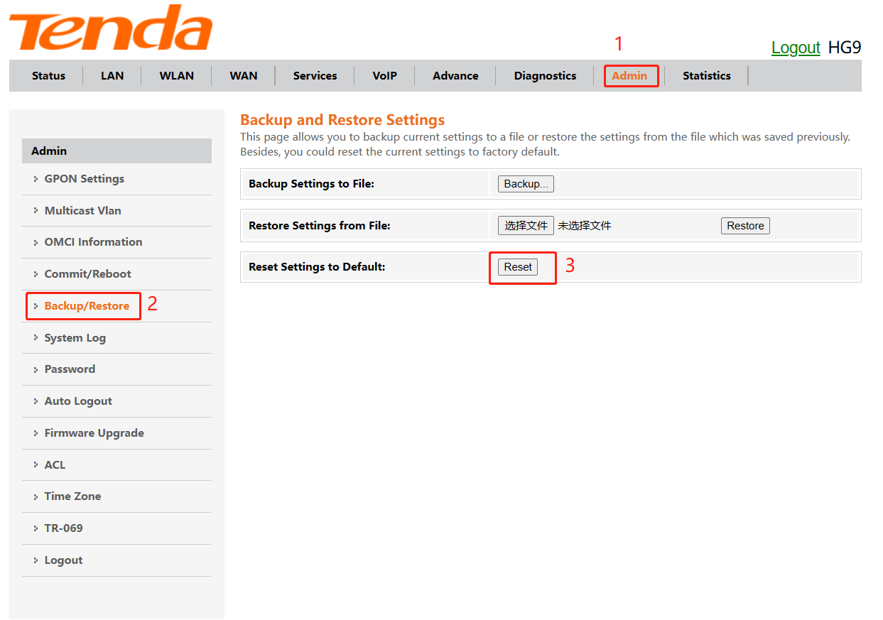 Step 2: If you need to restore the ONT configuration to the factory settings, click the reset button and wait for the ONT to automatically restart.
