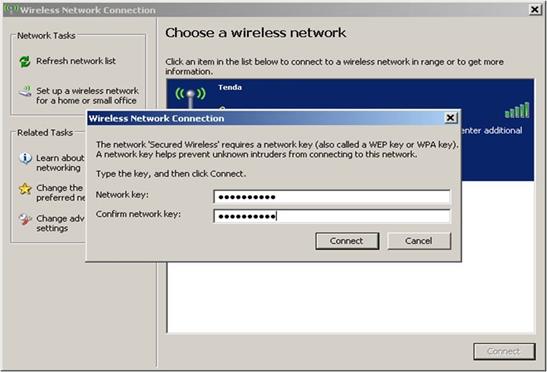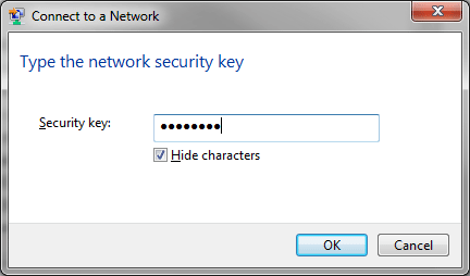 Enter your wireless Security key/Pass phrase/Key in the blank and click OK.
