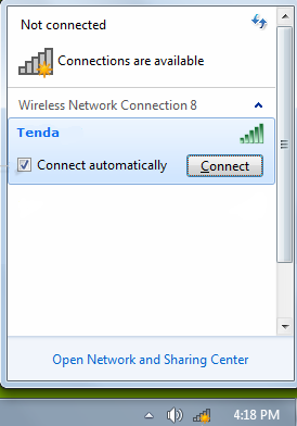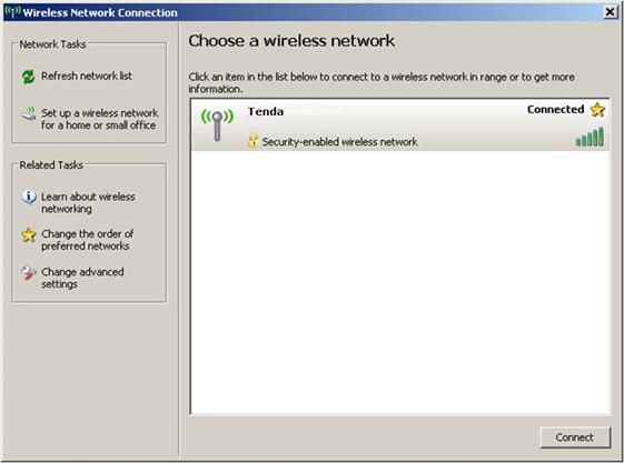 Windows will verify the password and, if you entered correctly, you will be connected to the Wireless network.