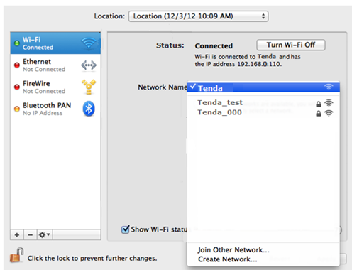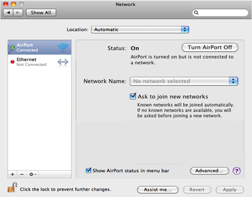 Select Airport and click Network Name drop-down menu to select your desired wireless network.