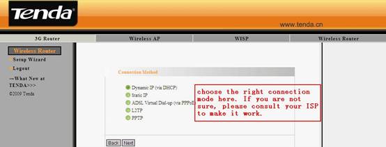 3. In this page, you should choose your Connection Mode which is provided by your ISP. If you are not sure, you’d better consult your ISP.