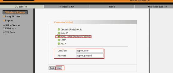 (3) If your connection type is PPPoE, please select it and input the username and password provided by your ISP. Click Next.