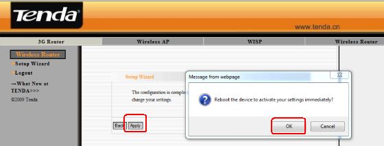 6. Click Apply and the router will reboot. Then you can unplug the cable between your computer and the router and enjoy the wireless network.