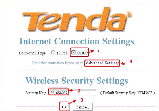 2. Choose DHCP , set a wireless password, click OK, then click Advanced Settings.