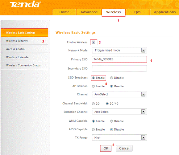 3 Click Wireless, then click Wireless Basic Security, making sure Enable Wireless and