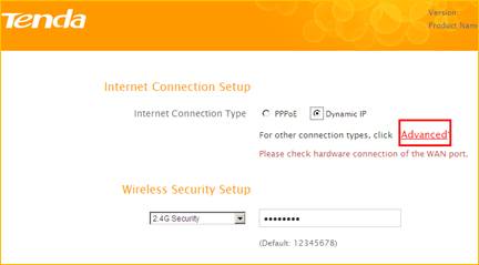 2 Click on Advanced on the home page to login the advanced setting page.