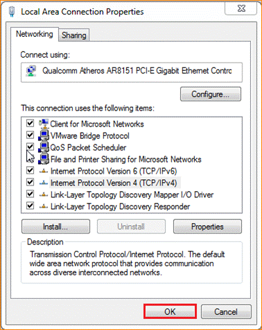 6 Also click onOK on the first Local Connection Properties window
