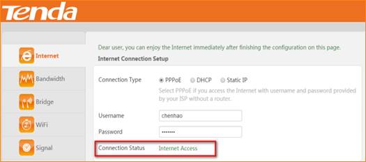 1 Check the Connection Status, if it shows Internet Access, it indicates that you can access the Internet.