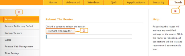 3.1.5 After setting, please click on Tools, and click on Reboot then hit on the Reboot The Router button to reboot the router for refreshing the device info.