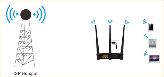 There are five operation mode for this CPE. In this mode, the AP will behave as client. In addition, router function is added between the wireless WAN side and the Ethernet LAN side. Therefore, the WISP subscriber can share the WISP connection without the need of extra router.