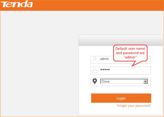 2 Fill in user name and password as admin/admin, and choose the country. click Login to login.