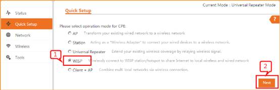 1 choose Quick Setup—WISP, then click Next.