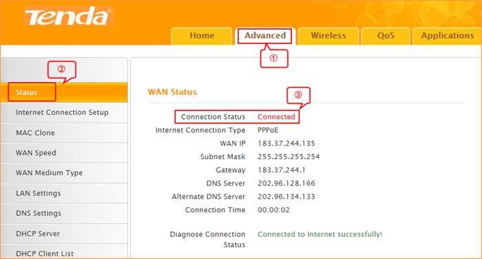 Type the User Name and Password as admin then Click on Advanced to login the advances setting page, and then check on the Status. if the Connection Status shows Connected that means you can access internet, please check.