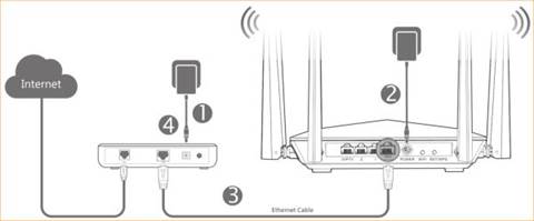 Connect the Ethernet cable with the WAN port of the router, and then connect your computer with one of the LAN ports by a cable.