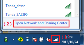 1 Click on Network Connection Icon on the system bar, then click on Open Network and Sharing Center.