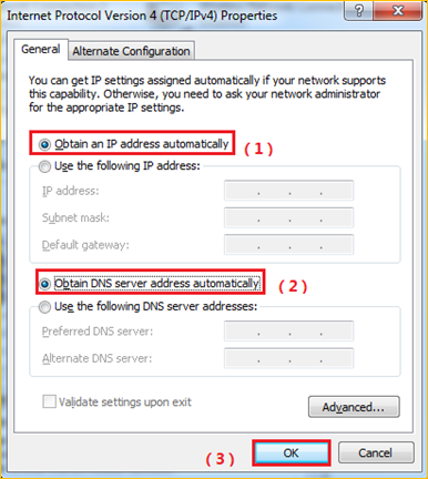 5 Choose Obtain an IP address automatically and Obtain DNS server address automatically and then click OK.