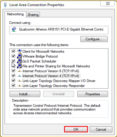 6 Also click on OK on the first Local Connection Properties window.