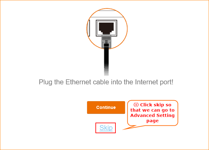 2. Click on Skip so that we can go to advance to setup the static IP connection mode.