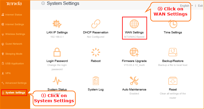 1.Click System SettingsàWAN settings, you will see a pop-up window.