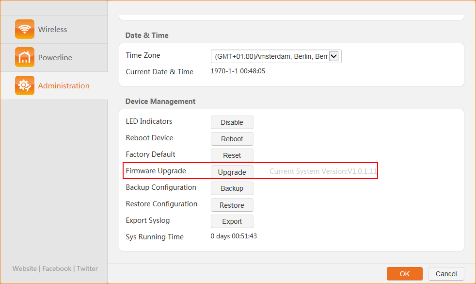 Step 2: Choose “Administration” > “Device Management” > “Firmware Upgrade”. Tap “Upgrade” to upload the firmware.