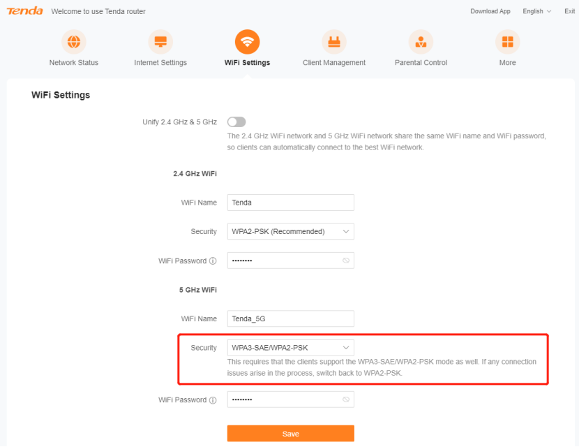 ② Check the router encryption mode, RX2LPro supports WPA3-SAE, but many devices do not support this encryption mode, if you choose this encryption mode, these devices will not connect to the router wireless signal, you can change to not include WPA3-SAE encryption mode.