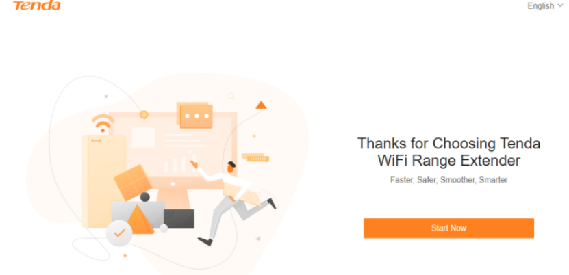 Connect your laptop to the WiFi network of the WiFi extender: Tenda_EXT, or connect your desktop computer to the LAN port of the WiFi extender with an Ethernet cable.