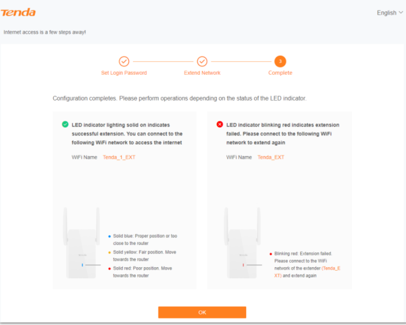 A progress box will pop up on the page, and then wait until the following page appears, configuration completed.
