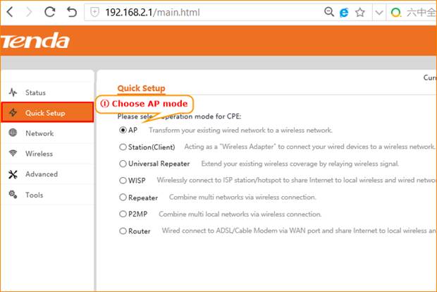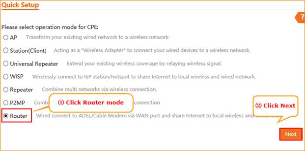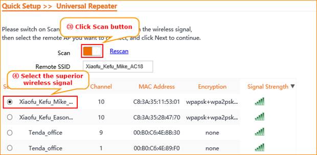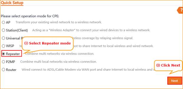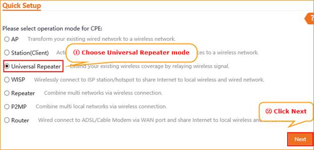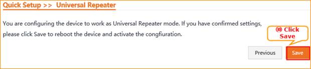 Select “Universal Repeater mode” in” Quick Setup” option.