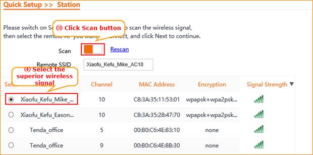 ②Mode two:Station Mode:Acting as a “Wireless Adapter” to connect your wired devices to a wireless network.