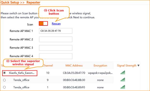 ③Mode three:Universal Repeater Mode:Extend your existing wireless coverage by relaying wireless signal.
