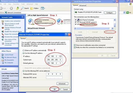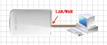 1. Connect your computer to the LAN/WAN port of 3G150B with Ethernet cable like the picture above. And then change the IP address of your computer to 192.168.2.X (X can be 2--254) manually, for example windows XP as below: