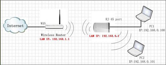 Note: The LAN IP address of the two routers should not be in the same segment. You should set like this, for example, the LAN IP of your uplink router is 192.168.1.1, while the LAN IP address of 3G150M is 192.168.0.1.