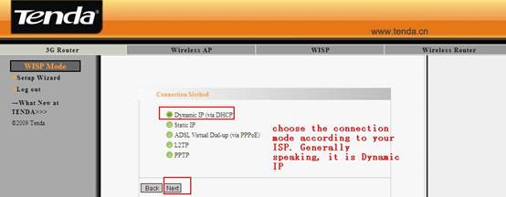 2.Please choose WISP among the four modes, and click Next.
