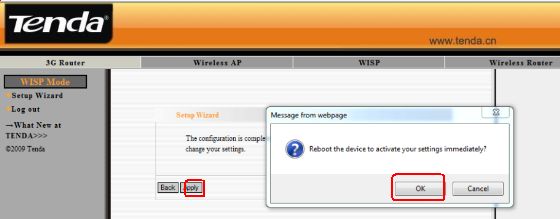 9.Click Apply and the router will reboot.