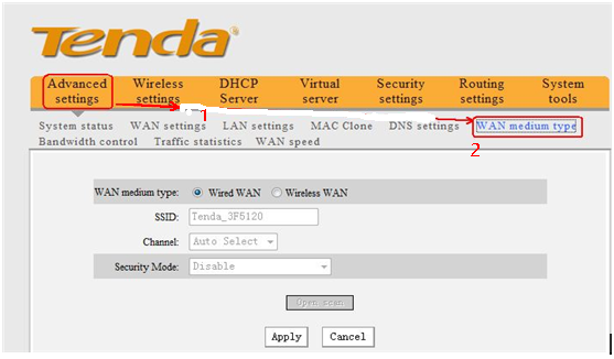 2. Click Advanced settingsàWAN Medium Type, you’ll see a page as follows.