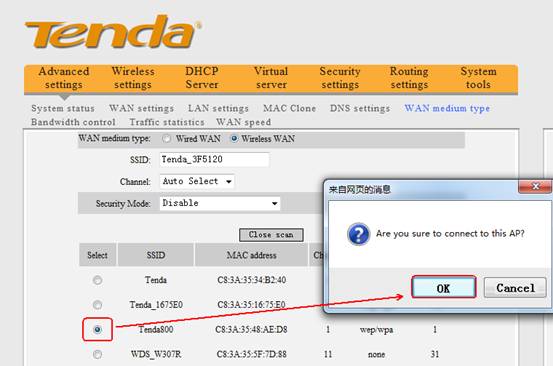 4.Choose the uplink router’s wireless signal and click OK.
