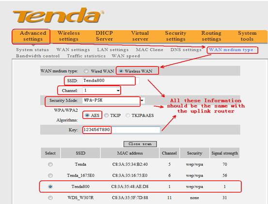 A:Sometimes we want the router to be a wireless repeater to the uplink wireless signal. You can achieve this through choose Wireless WAN for the router