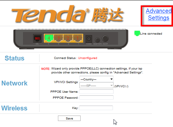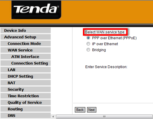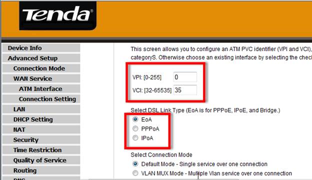 2.4 Type in the correct VPI/VCI value and choose the correct DSL Link Type.