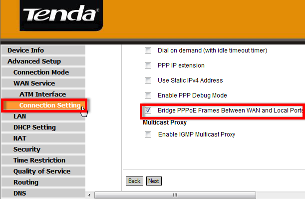 3. If your connection type is PPPoE, please make sure that after typing in the PPPoE user name and password, you`ve checked the Bridge PPPoE Frames Between WAN and Local ports.