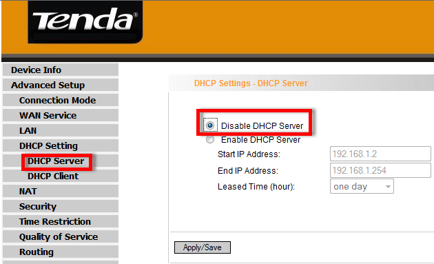 4. If your Connection Type is Dynamic IP, please disable the DHCP server.