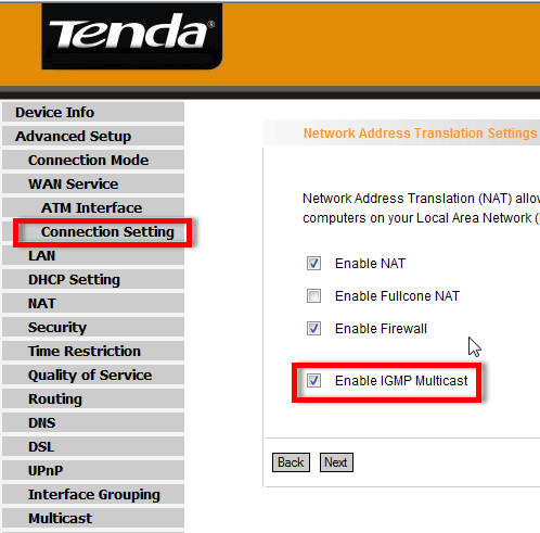 5. If your connection type is IPOE or IPOA, please make sure that you have enabled the IGMP Multicast.